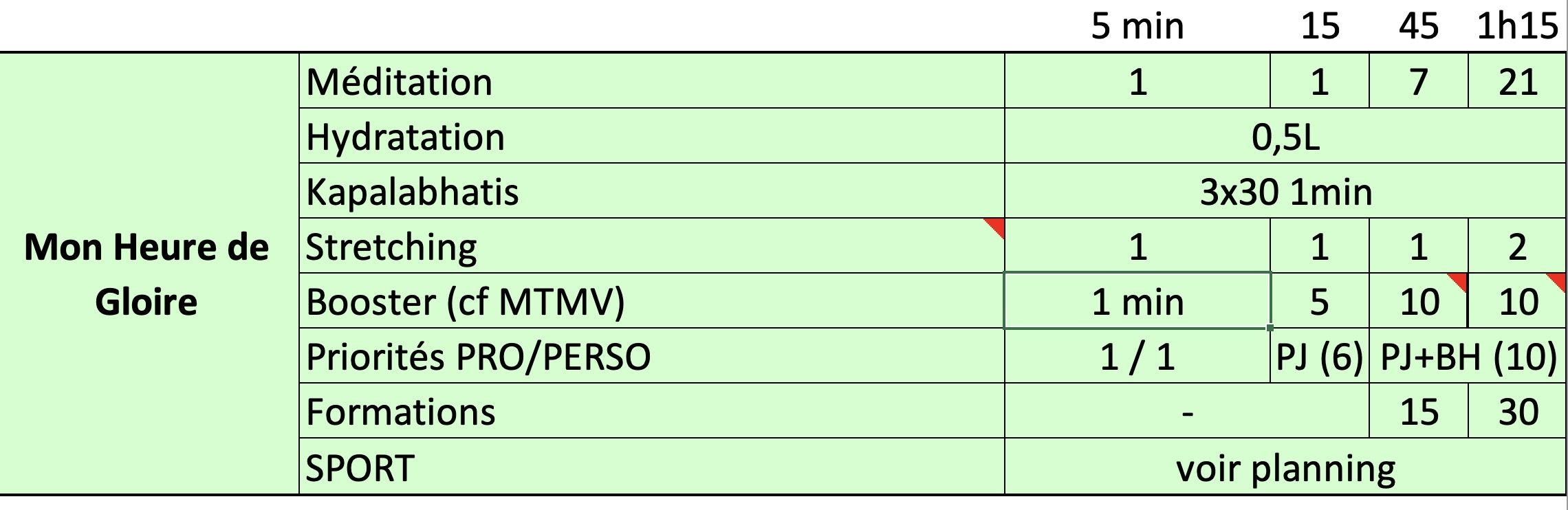 Prioritiés du jour : 1 perso & 1 pro 1min